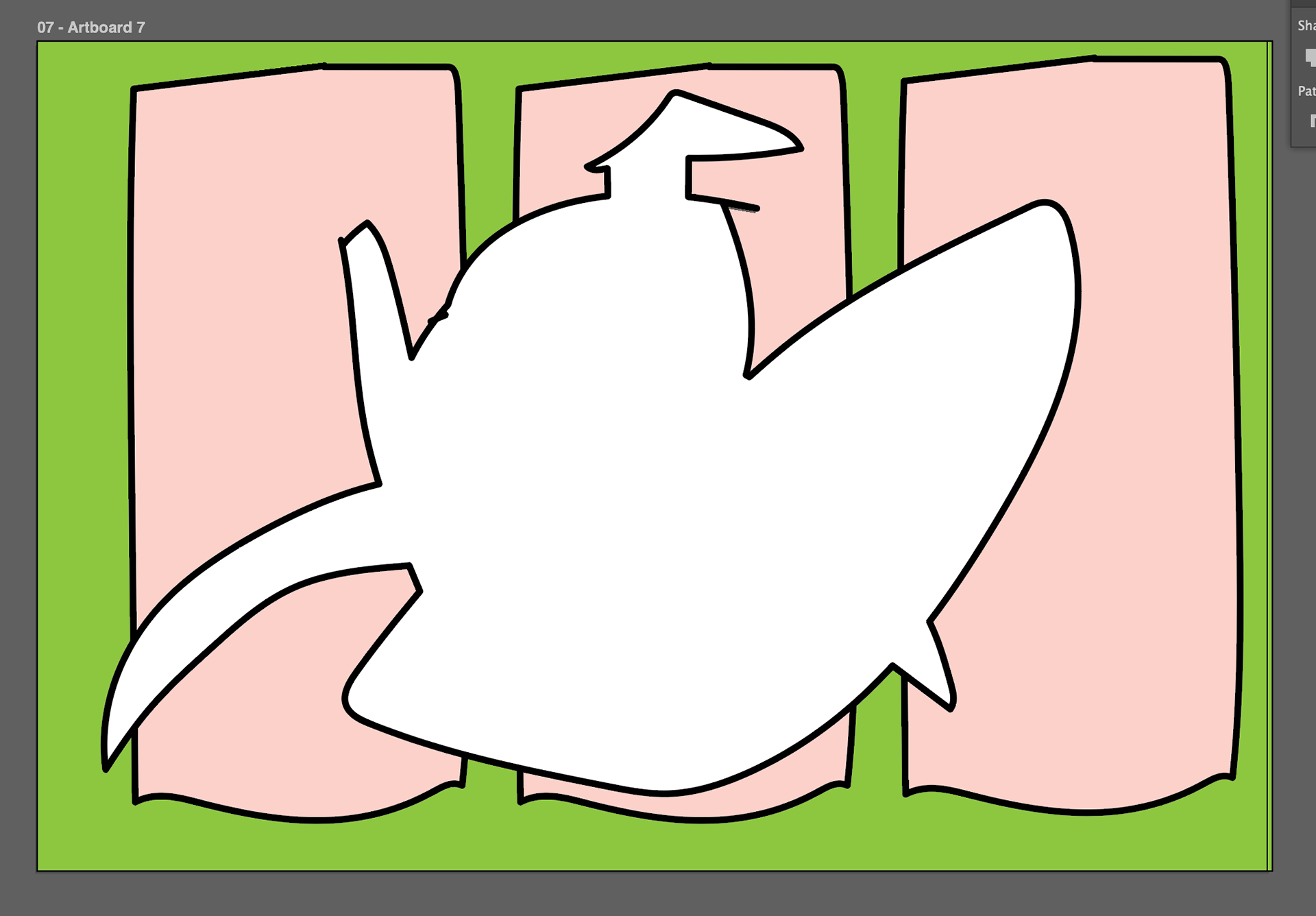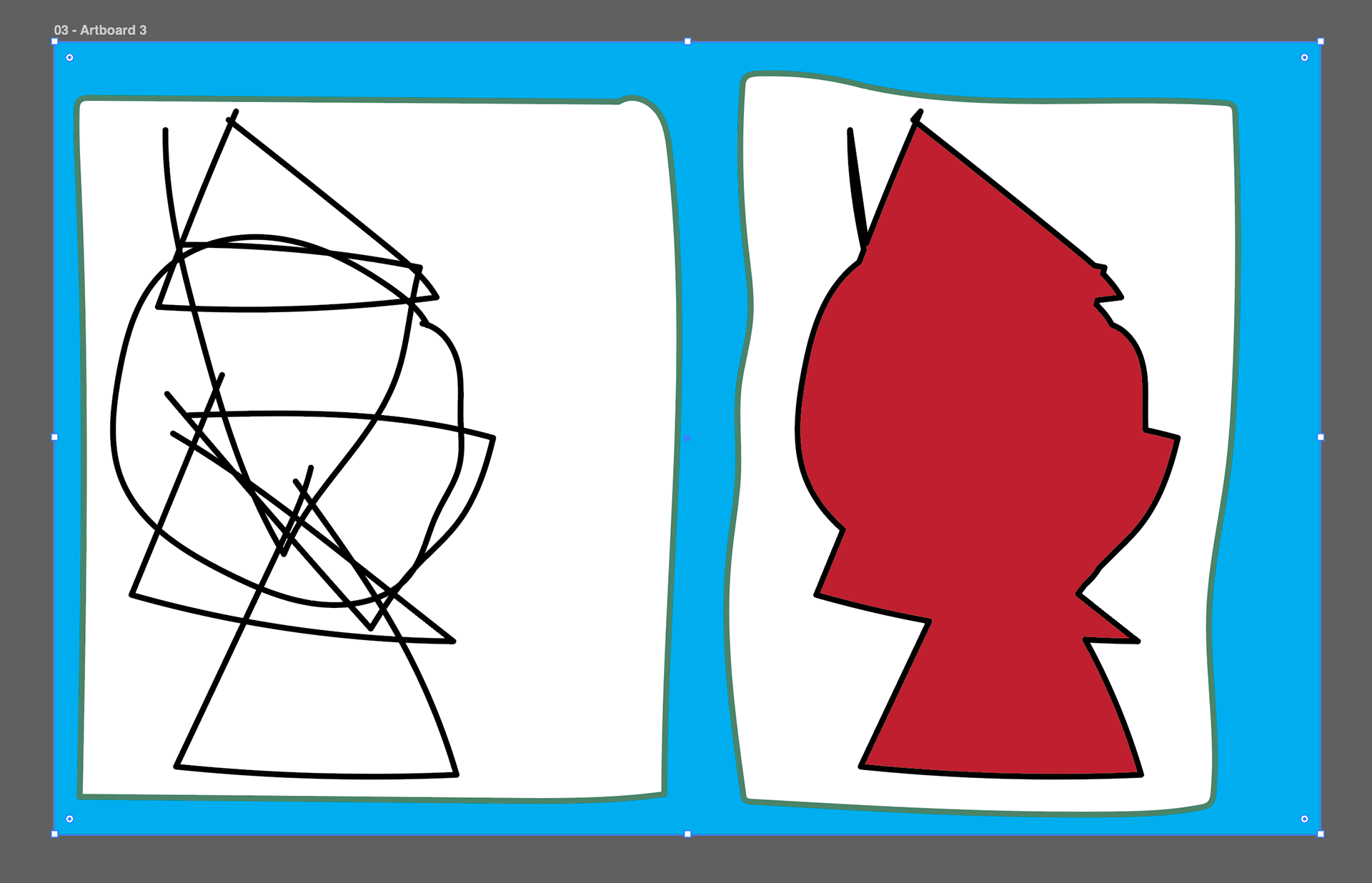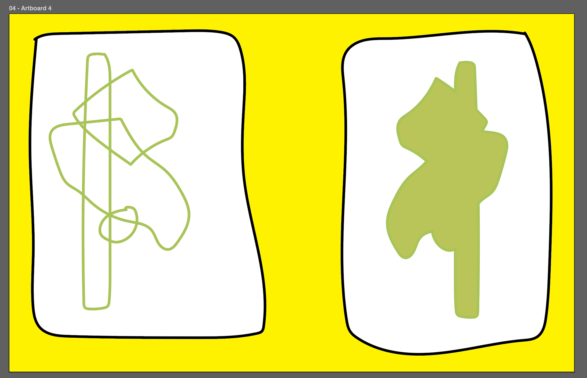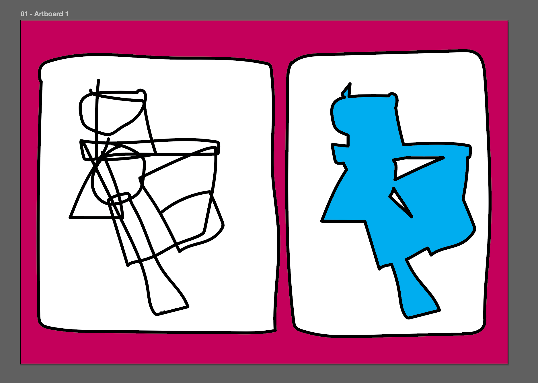 Wanting to explore this simple yet effective process of generating forms that interlock, collide and merge and then repeating the shape, placing it next to it, where PATHFINDER (UNITE) has been applied. UNITE merges all of the shapes leaving only the border (stroke) as the final shape, this allows you to fill the positive space with a flat colour. There is potential with this technique through painting, where two similar yet distinct forms are juxtaposed forming a dialogue through a mutual language. The clear similarities unite the forms yet they are simultaneously distinct in complexity. I am drawn to adapting Adobe creative techniques through analogue processes. This painting will simply be a work in progress and additional iterations will / could evolve.