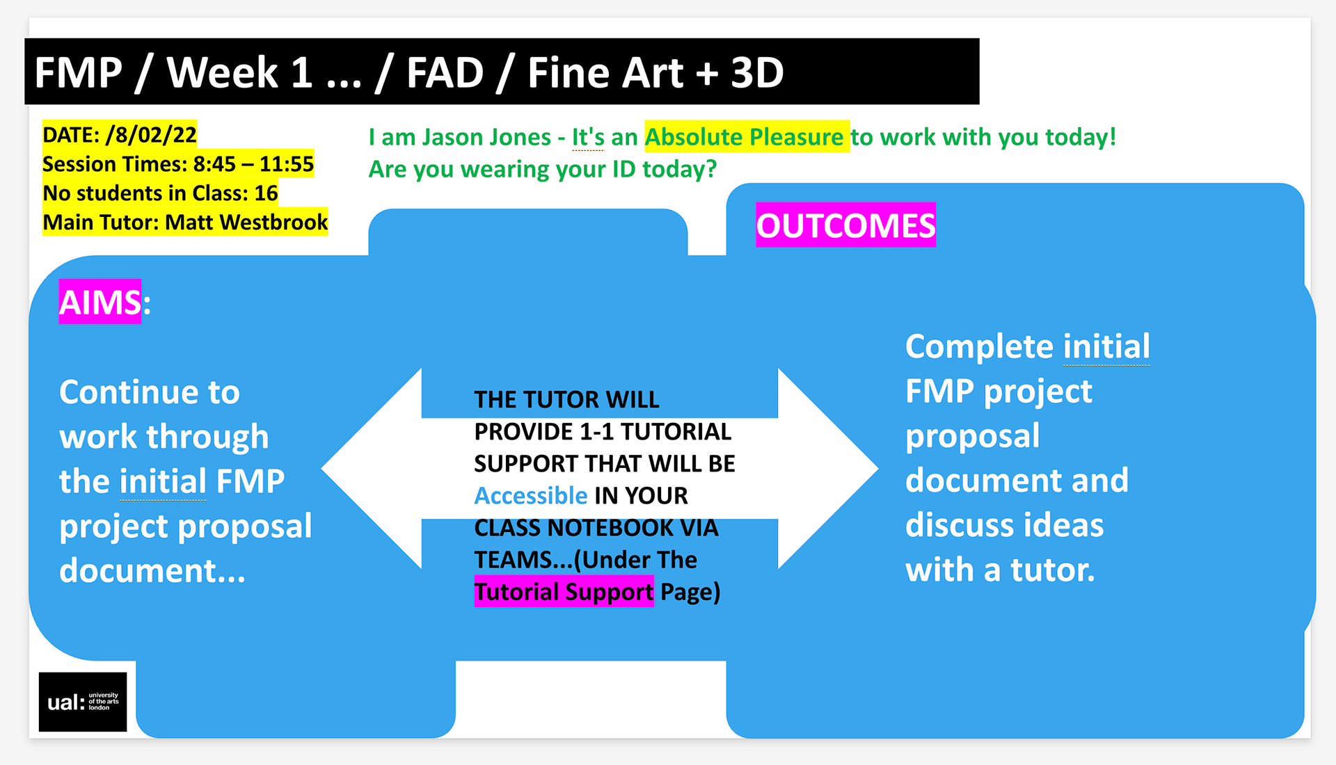 Studio provision at College. This is a space that I can use and will explore developing new work.