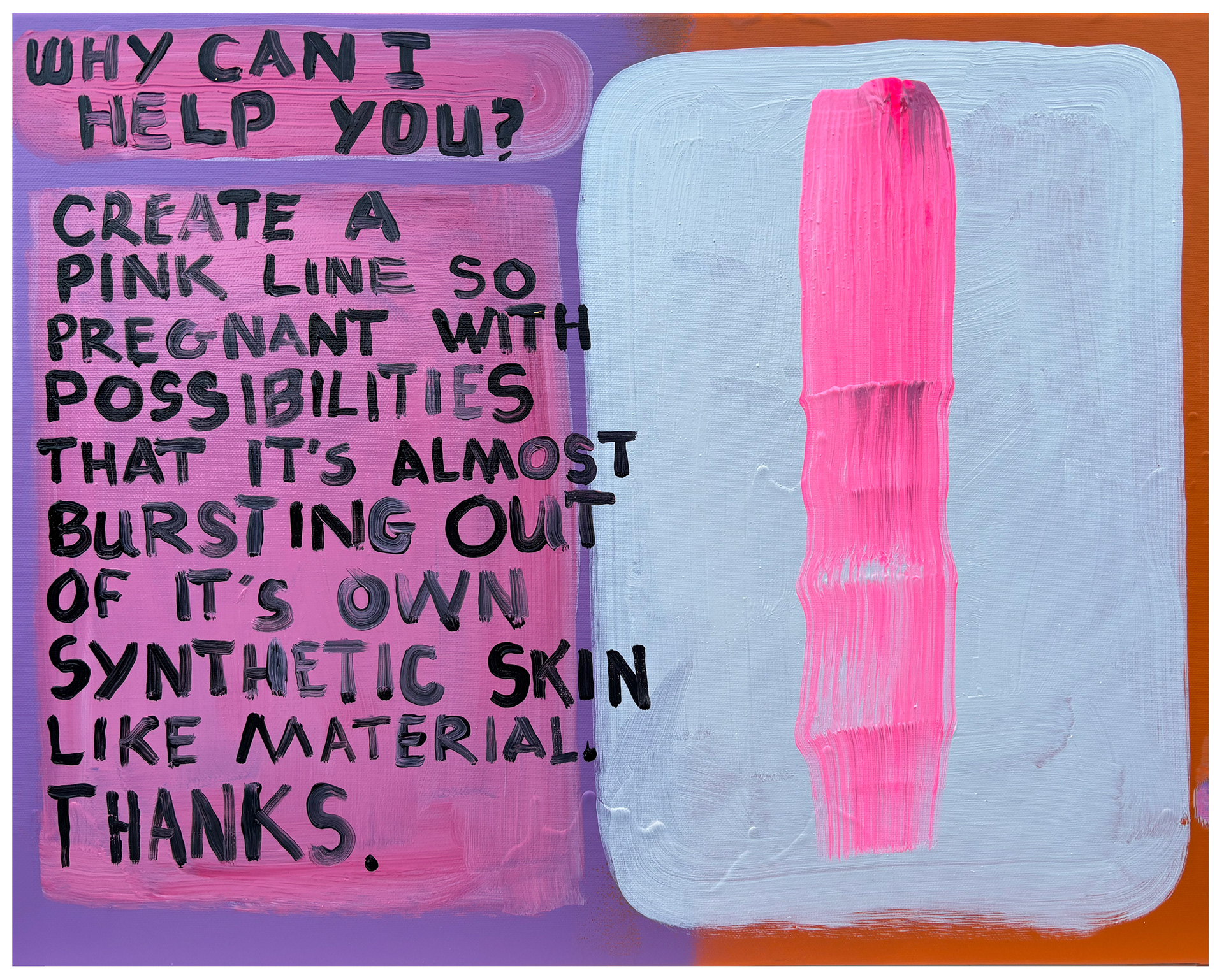 Ai prompts: create a pink line so pregnant with possibilities that it’s almost bursting out of its own synthetic skin like material. thanks.